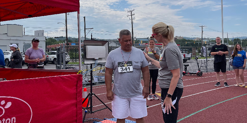 About one year later, Bobby returned to Allied Services with therapist Stacey Williams, PT, DPT, C/NDT.