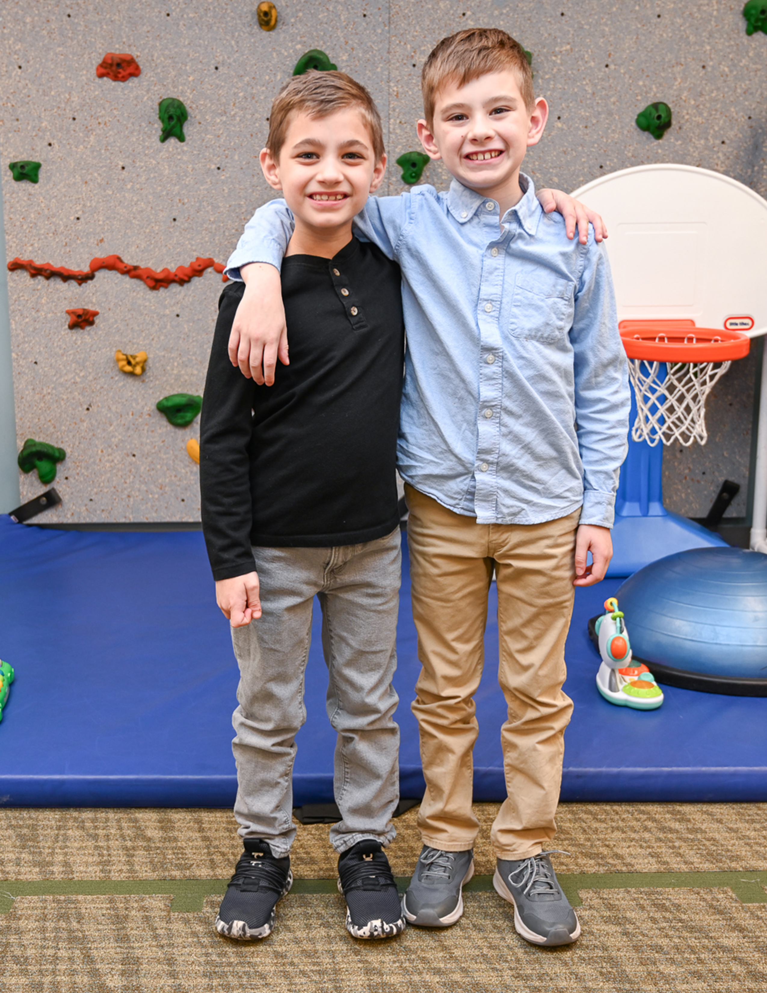Today, Dominic participates in some form of therapy each day - whether speech, physical, occupational, or behavioral - he continues to improve. His speech development has been especially extraordinary. Once nonverbal, Dominic can now hold full conversations with his older brother, Jason.