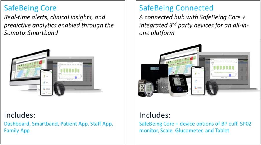 Somatix SafeBeing™ is a remote patient monitoring platform that can improve safety and well-being for elderly and at-risk individuals at home and in long-term care facilities.